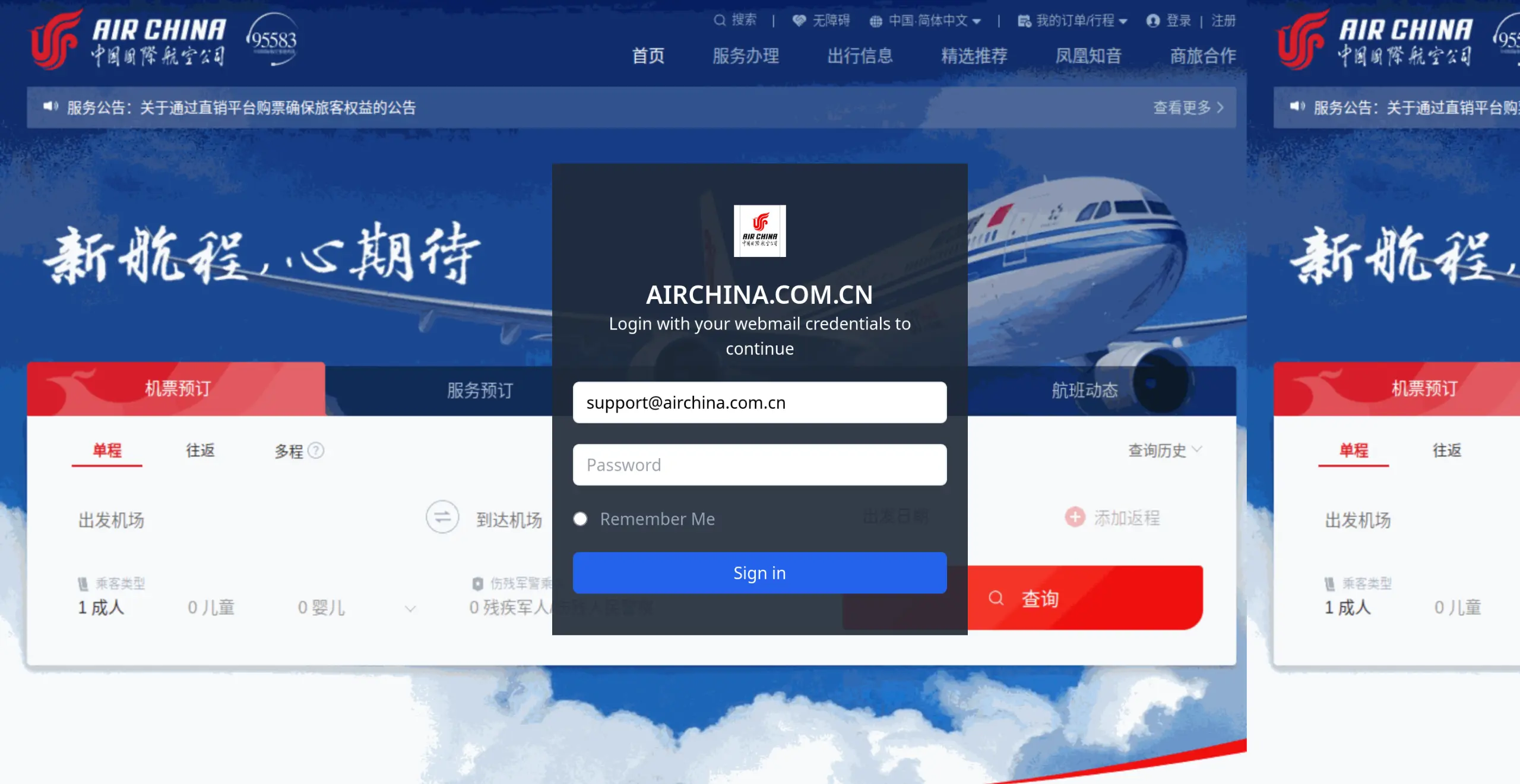 — a logo finder API, which falls back to favicon to make the form look more legitimate. This is how the form renders given the airchina.com.cn domain: